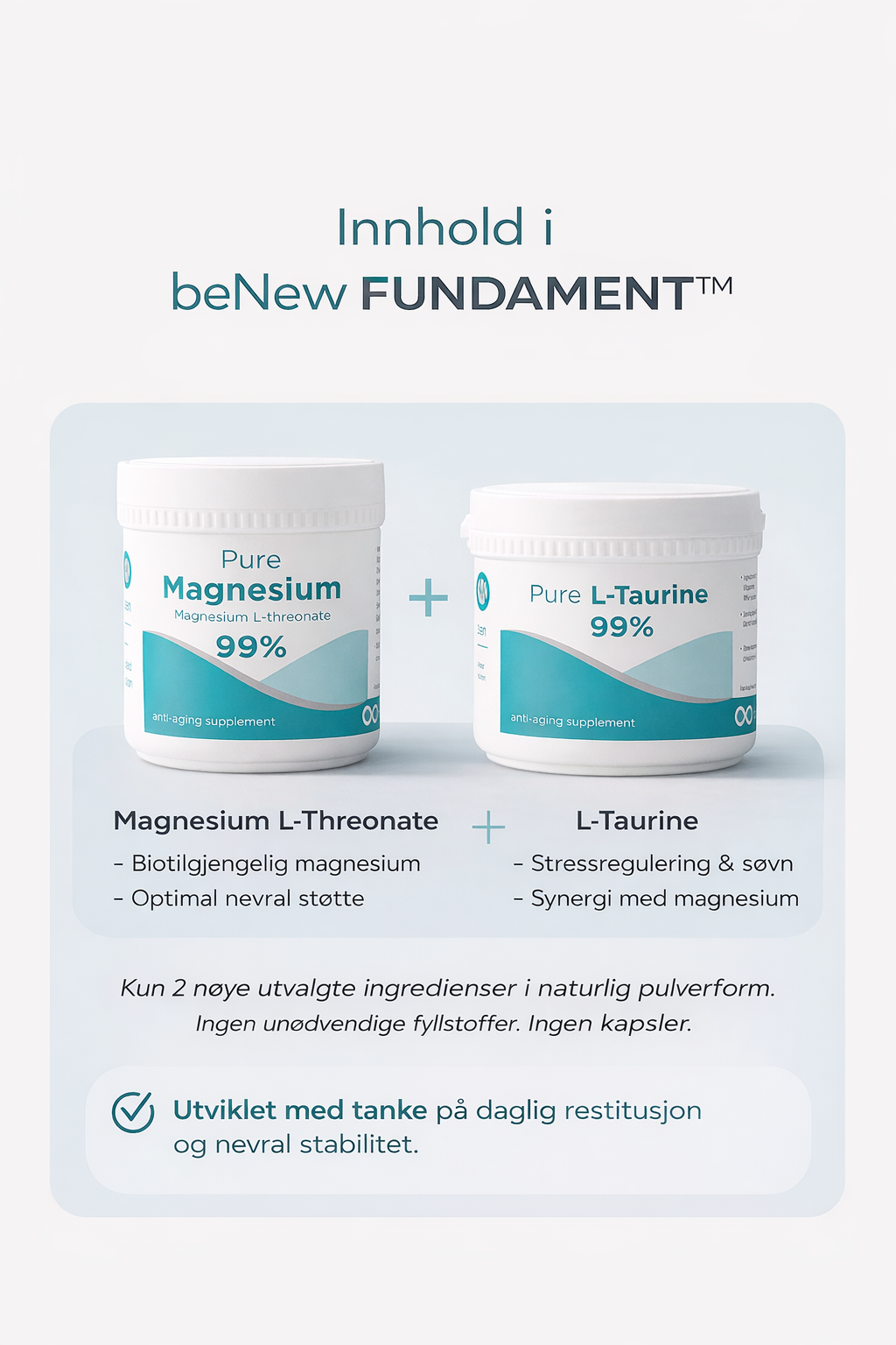 beNew Fundament er et kosttilskuddsbasert støtteprodukt og erstatter ikke medisinsk behandling eller et variert kosthold.